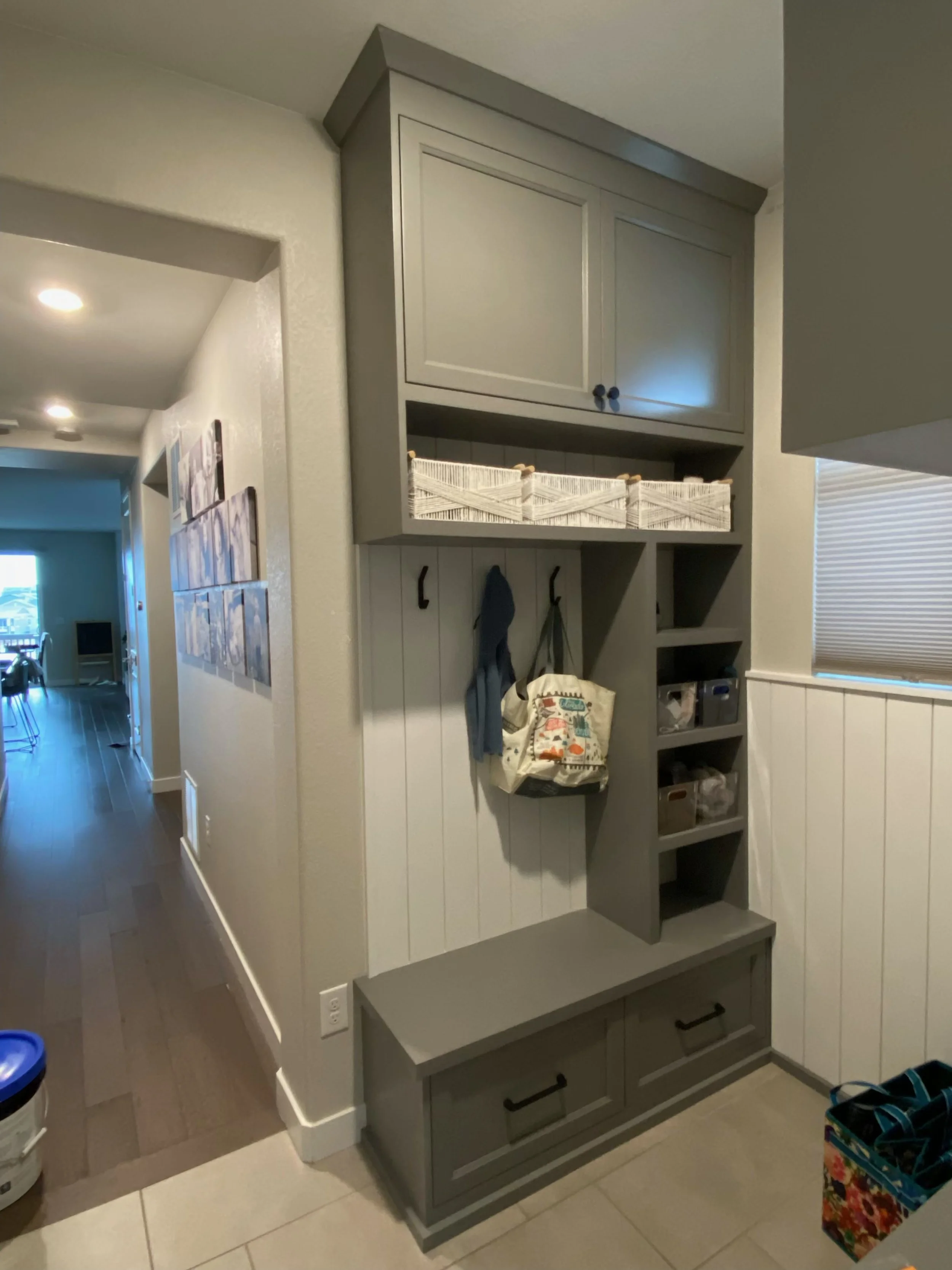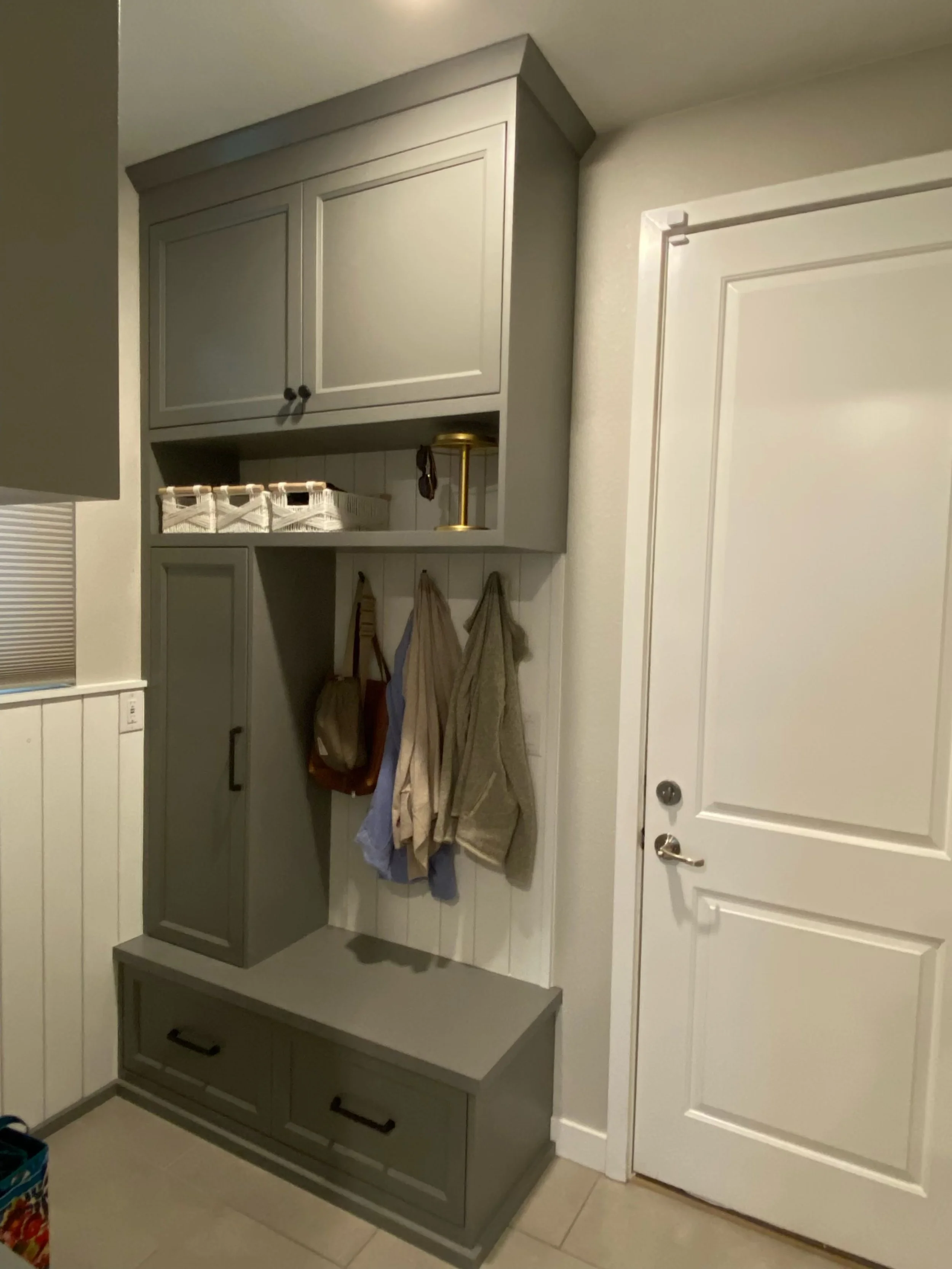 Every element was considered in relation to daily use from how items are accessed and organized, to how the space feels when you first walk through the door. Clean lines, warm materials, and thoughtful proportions allow the cabinetry to feel like a natural extension of the home.