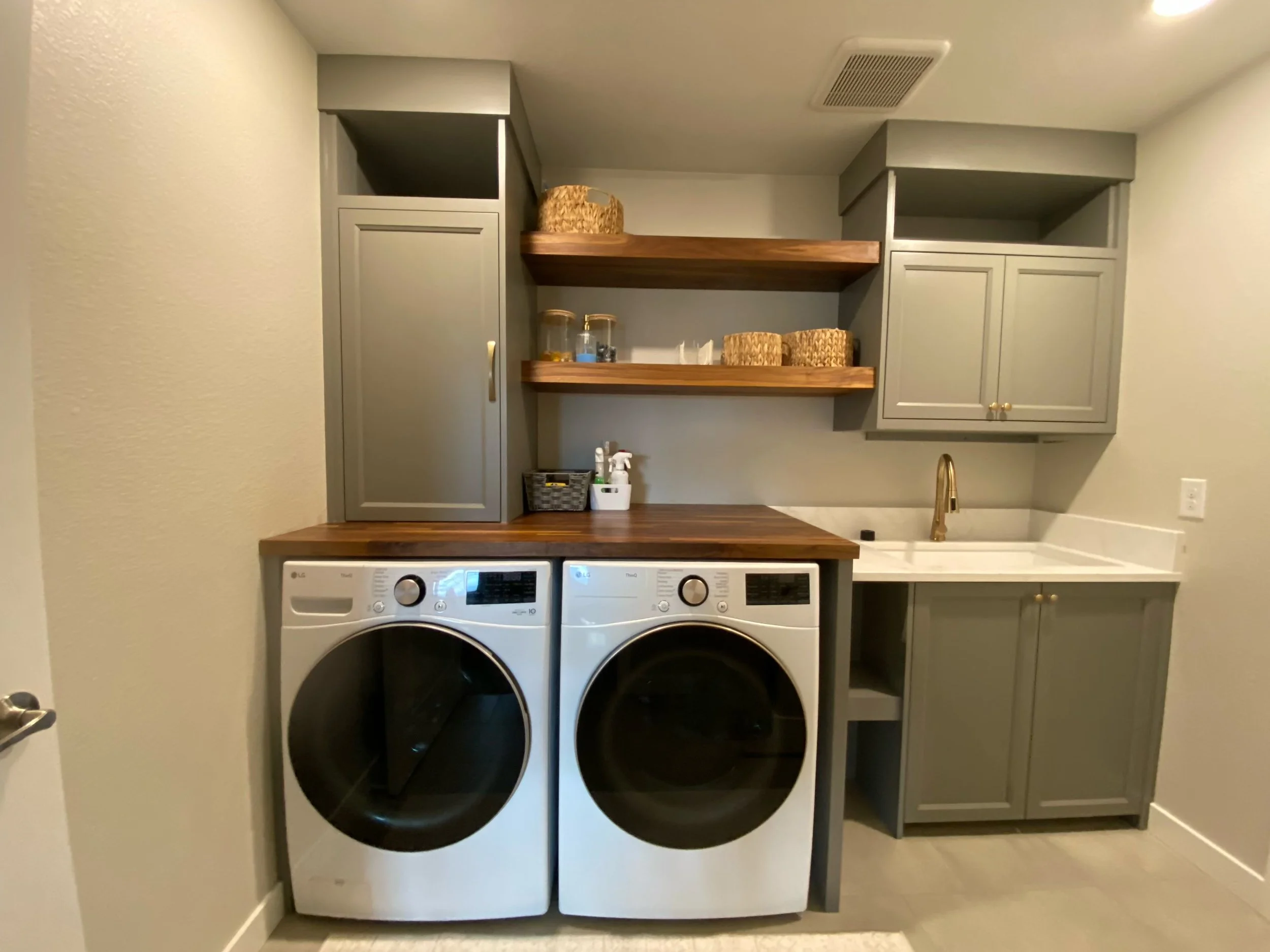 Custom cabinetry was designed to feel seamless within the architecture, offering generous storage without overwhelming the space. Everything has a place, keeping daily essentials organized and out of sight.
